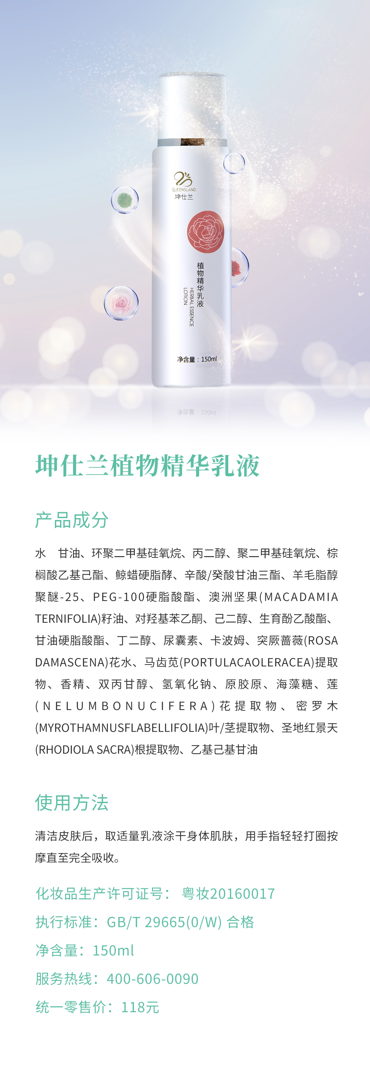 坤仕蘭植物精華乳液